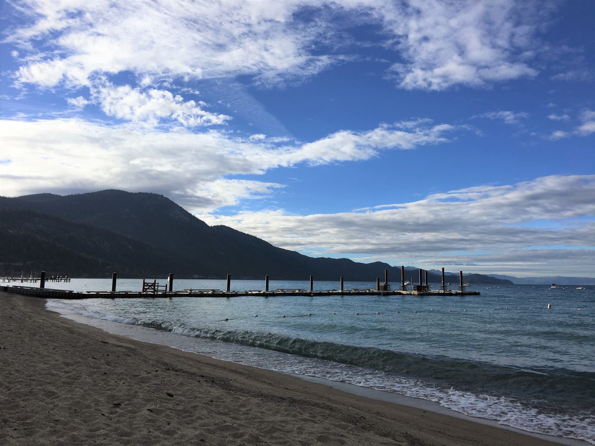 ぐっすりと良い睡眠がとれた一夜が明けた翌朝のタホ湖。空気も湖水も清んでて爽快です。