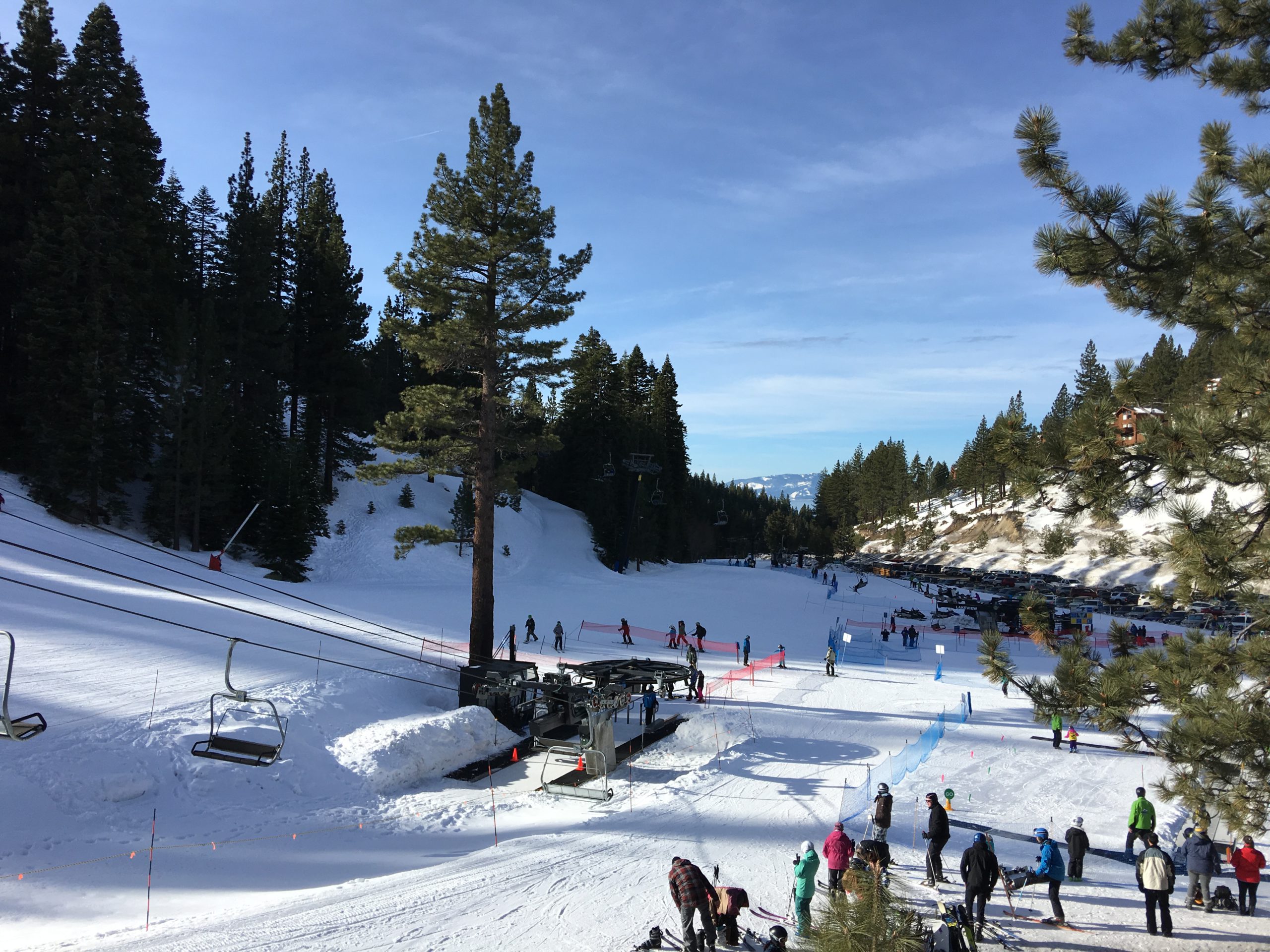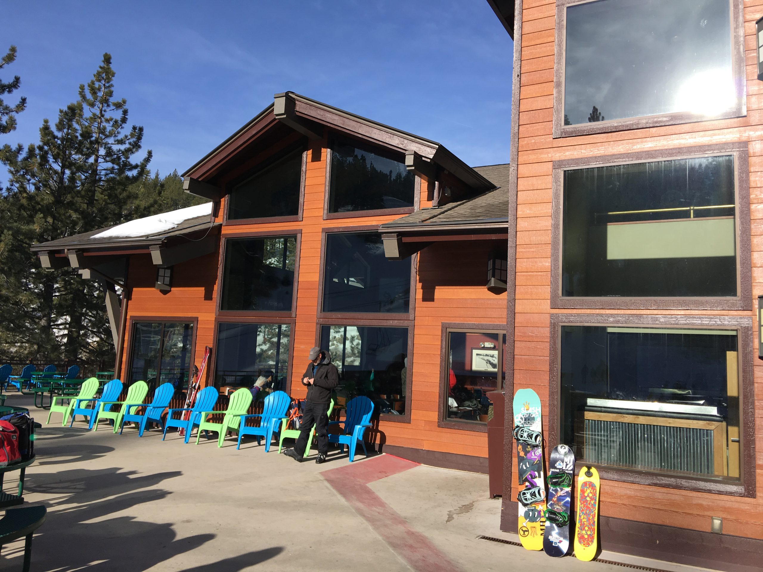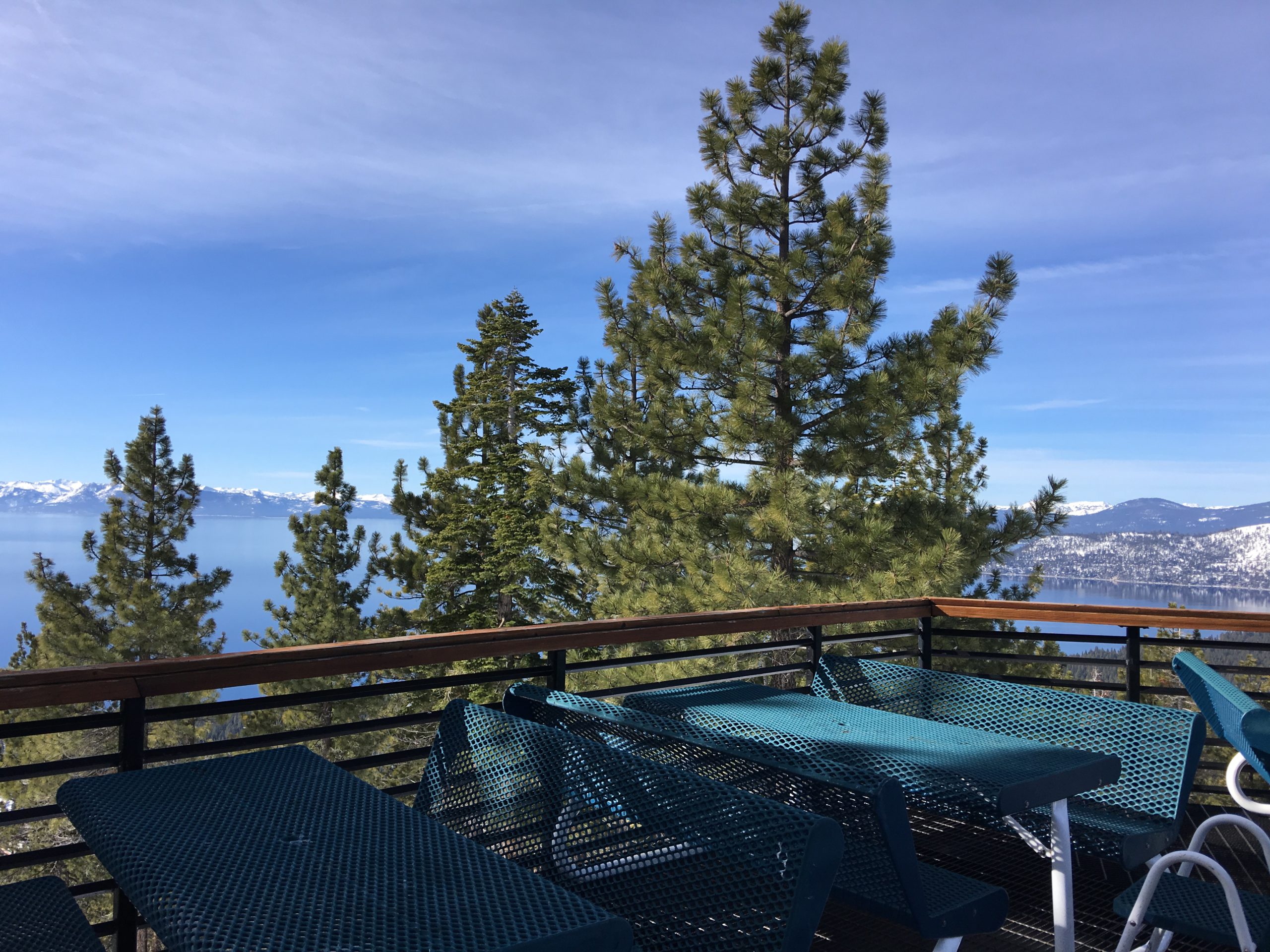 山の中腹裾にあるこのSnowflake Lodgeはこちらもロッジといっても宿泊施設ではなくカフェテリア兼休憩所でここからの眺望はそれはそれは素晴らしい紺碧のタホ湖ビュー!スキーはともかく、この景色を見にだけにでも来たいとおもわせるレイクビューです。ここは朝はガラガラでしたがランチ時分は食事の購買は長蛇の列&テーブルは争奪戦、とかなり混む激戦区となります。週末はここでBBQランチも販売してます。