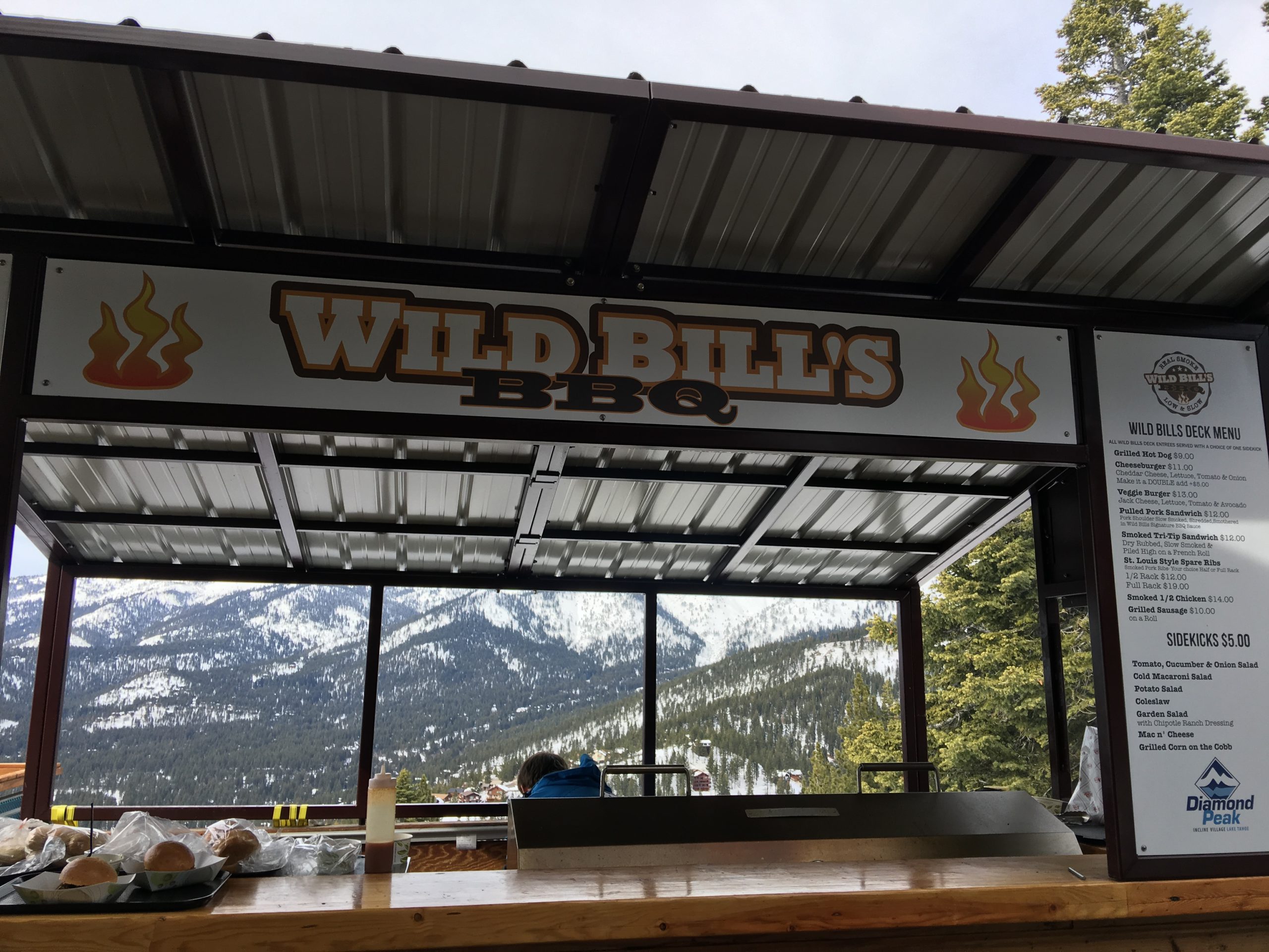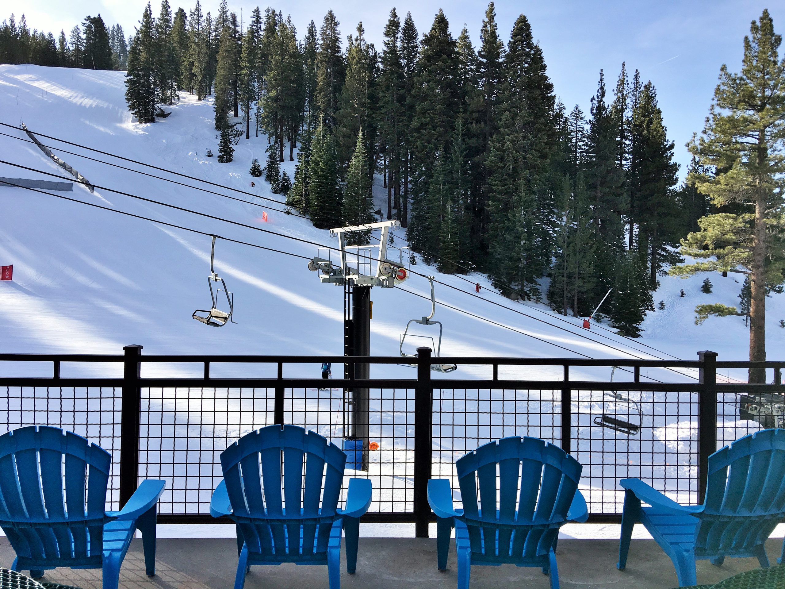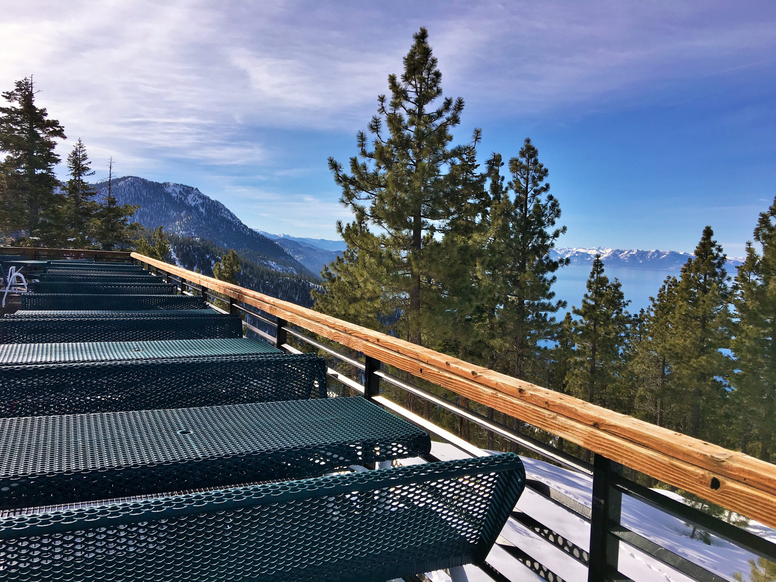山の中腹裾にあるこのSnowflake Lodgeはこちらもロッジといっても宿泊施設ではなくカフェテリア兼休憩所でここからの眺望はそれはそれは素晴らしい紺碧のタホ湖ビュー!スキーはともかく、この景色を見にだけにでも来たいとおもわせるレイクビューです。ここは朝はガラガラでしたがランチ時分は食事の購買は長蛇の列&テーブルは争奪戦、とかなり混む激戦区となります。週末はここでBBQランチも販売してます。
