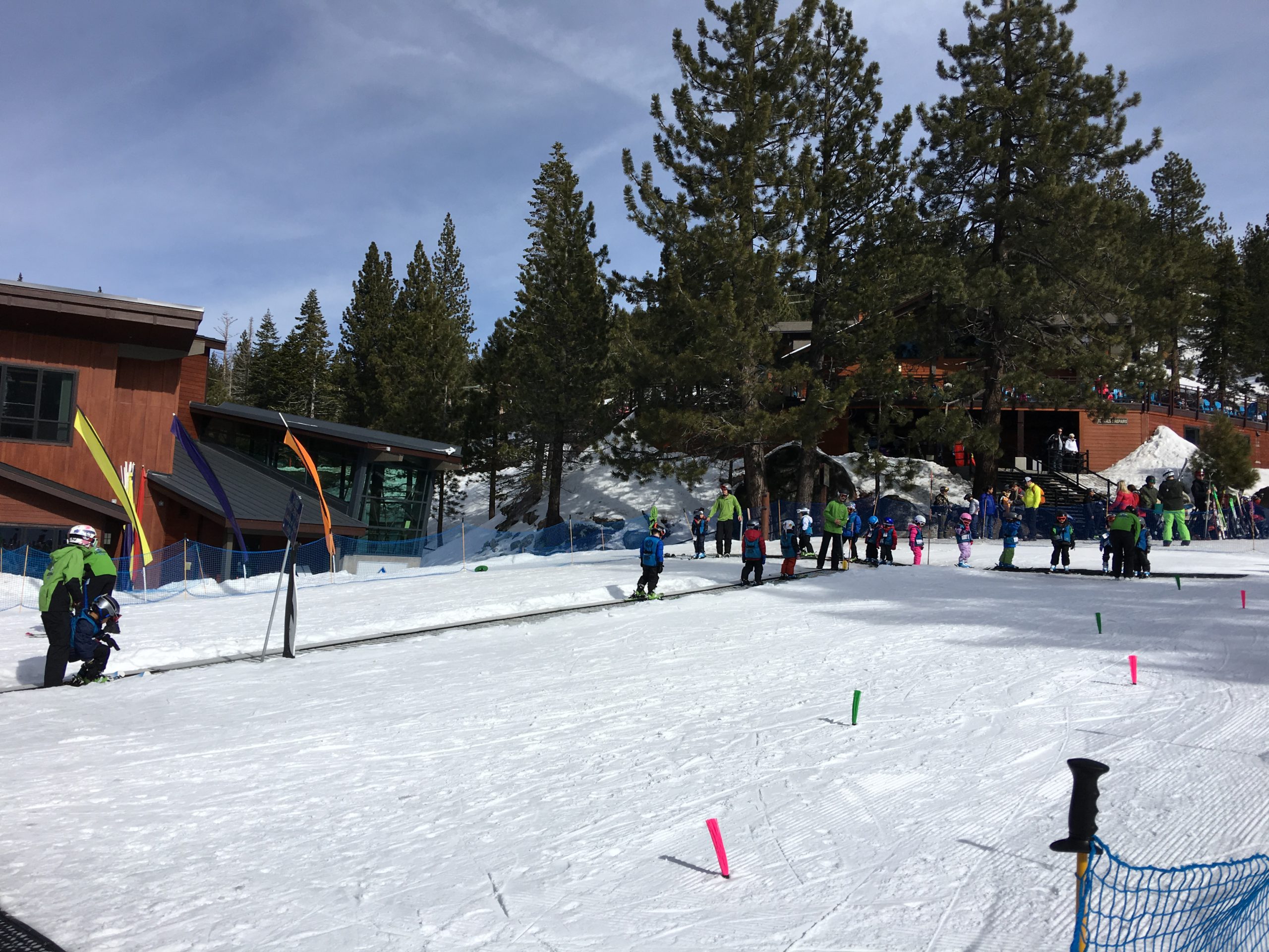 Diamond Peakは家族向けなことが特長のひとつでもあり、子供レッスンも充実。インストラクターにお子達をお任せしてる間に大人スキーまたはスノボをエンジョイ出来ます。リフト代わりのベルトコンベヤーに順におとなしく乗ってるちびっこ達、めちゃ可愛い。6歳以下はリフト無料なので一人前に滑られるよう上達したらお得です。ちなみに80歳以上もリフト無料です。ゆくゆくは毎日タダでスキー出来るよう体力作りを怠りなくして長生きしたいものです。